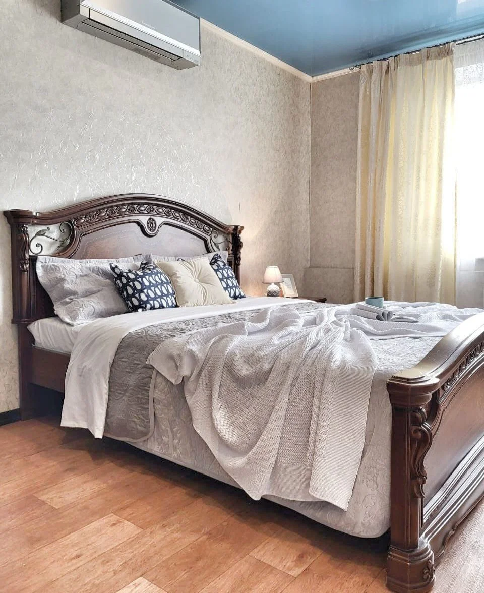 Просторная, комфортная, сочетающая в своем интерьере нотки классицизма и современного дизайна – настоящая находка для большой семьи, молодой пары или командированных, туристов из дальних городов или других стран, ведь квартира находится всего в 15 минутах от аэропорта. В ней присутствует качественная добротная мебель и бытовая техника, а также удобный ортопедический матрас, который точно поможет вам расслабиться после длинных экскурсий по городу! А на большом балконе можно наблюдать за огнями ночного проспекта и вс...