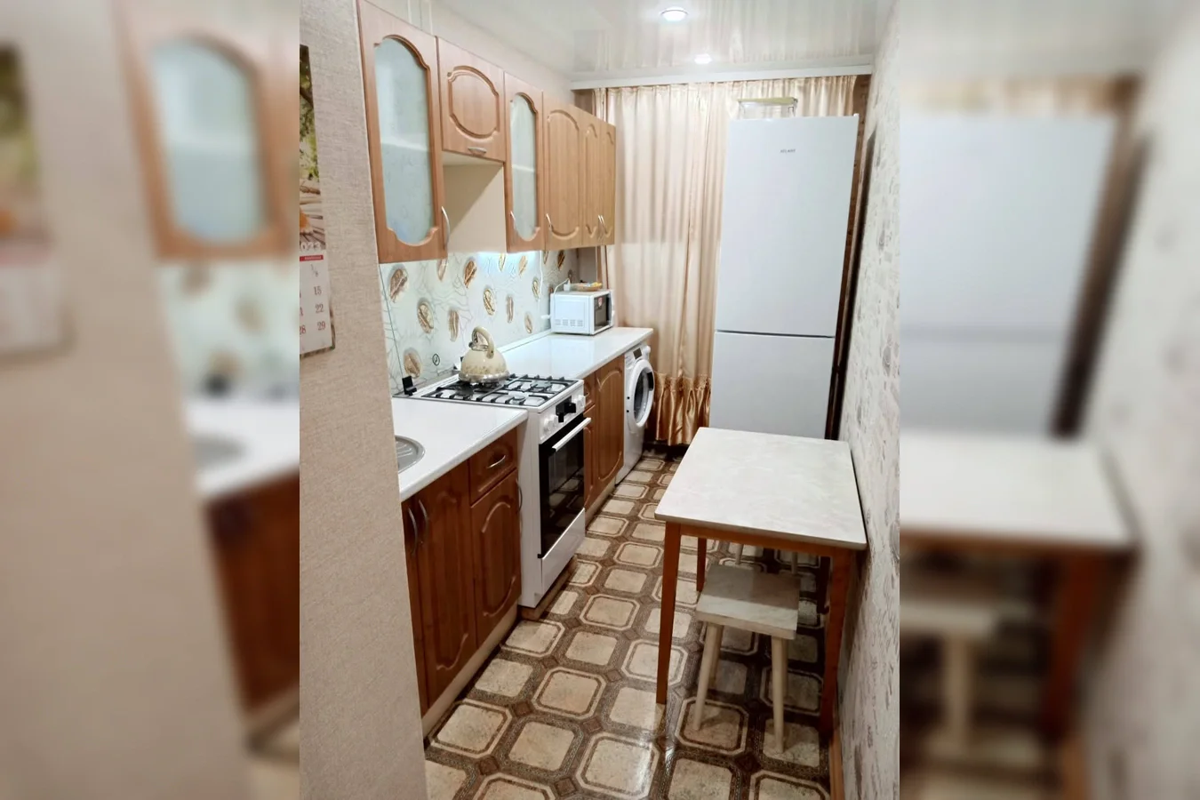 Снять на сутки 1-к квартиру в СПб у СПбГАСУ (Московский пр 57) 📍 Локация Московский пр 57, Адмиралтейский район. 7 минут пешком до метро Фрунзенская, 8 минут до метро Технологический институт. В шаговой доступности СПбГАСУ, Военмех и ВМА. 🏠 Оснащение и техника 60 кв.м, 1-комнатная, 5/5 этаж. Кухня: Гарнитур в классическом стиле (дерево), газовая плита, СВЧ-печь, белый двухкамерный холодильник, обеденный стол на две персоны, стиральная машина. Интерьер: Пол на кухне — коричневая плитка с геометрическим узором. Ком...